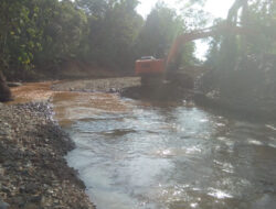 Kondisi Sungai di Desaa Pu,ununu, saat Alat Berat milik BPBD Kabupaten Bombana yang sedang normalisasi sungai.